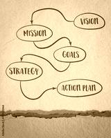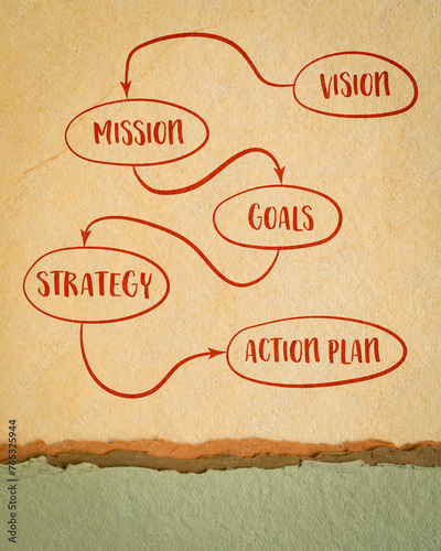 vision, mission, goals, strategy and action plan - diagram sketch on art paper, business concept