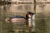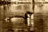 Great Crested Grebe, Podiceps cristatus has caught a fish.