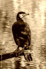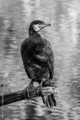 The great cormorant, Phalacrocorax carbo sitting on a branch