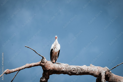 portrait of a white stork in the zurich zoo standing on a branch, wildlife photography