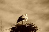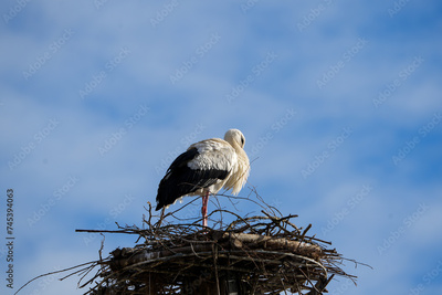 stork - ooievaar - picture in its nest in the zurich zoo against a cloudy sky