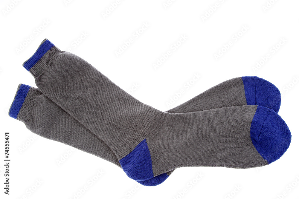 Pair of grey socks isolated on white