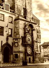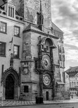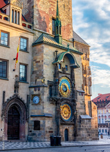 Astronomical clock at City Hall tower on Old Town square, Prague, Czech Republic
