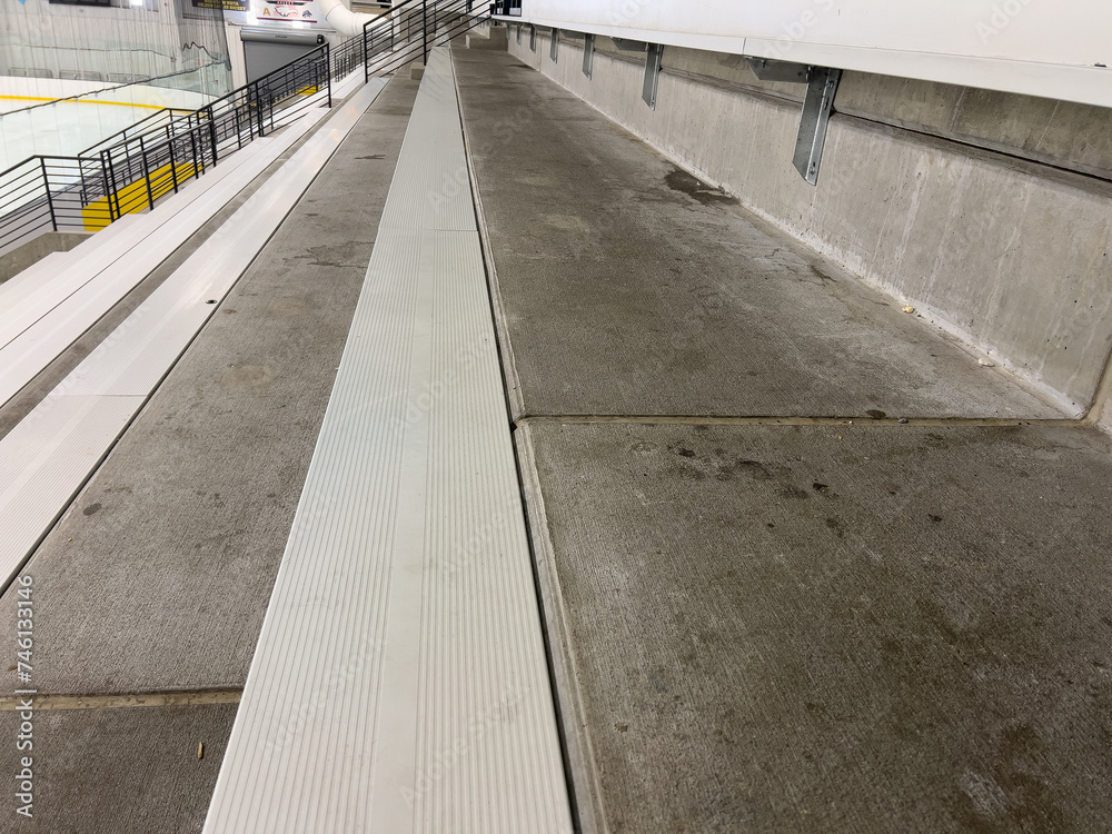Empty Bleachers Overlooking an Ice Rink Awaiting Spectators