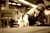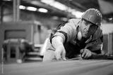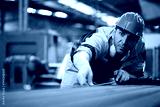 worker or technician using tape measure and measuring the length of the machine in the factory