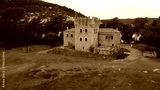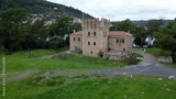 Drone aerial view of Githio island (Gythio town) in Laconia, Peloponne - picturesque small fishing village of Gytheio in South Peloponnese - lighthouse and Green nature