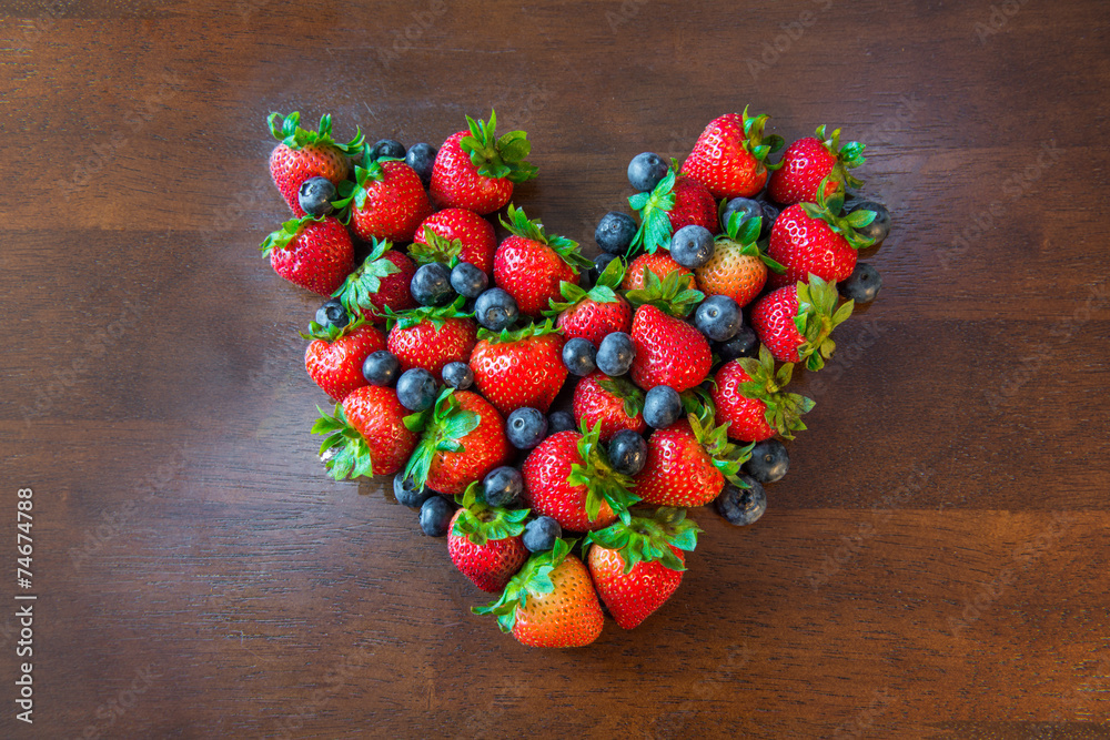 Blueberries strawberries Heart shape