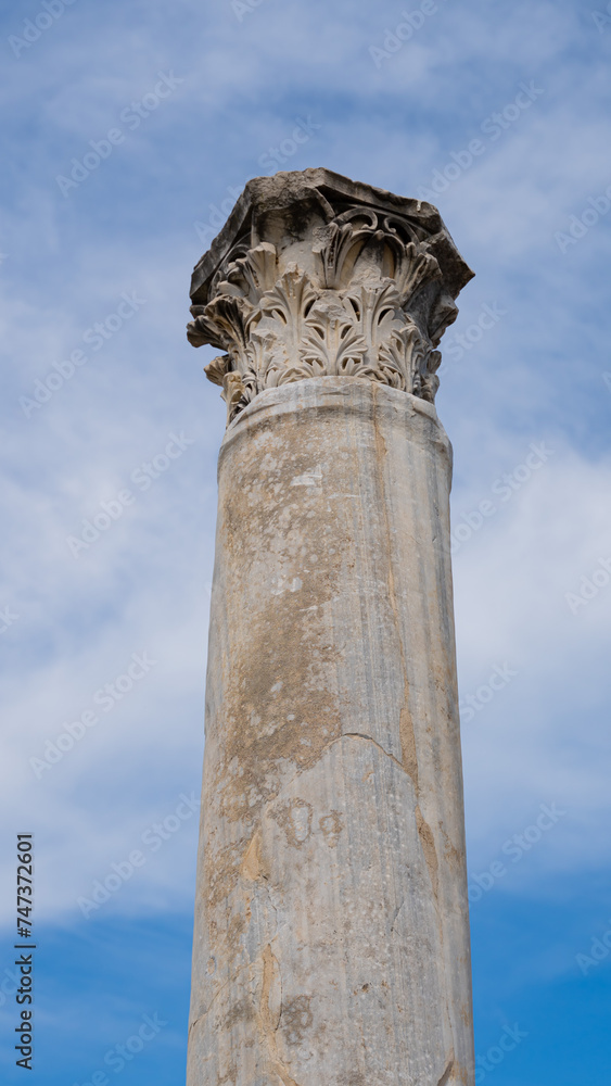 Close-up the column of the ancient Greek temple in the city of Perga in Turkey