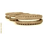 Delicious chocolate cookies with cream on isolated background