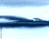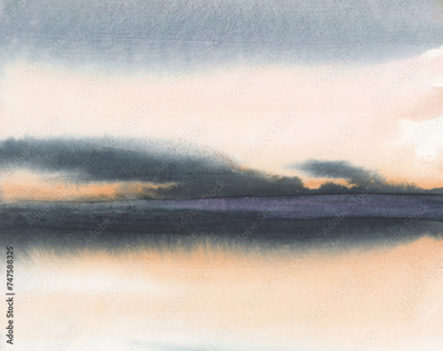 Ink watercolor hand drawn smoke flow stain blot landscape on wet paper texture background.