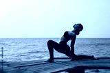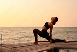 Woman yoga exercise during sunset. Female doing yoga on the beach.