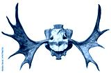 Moose Skull and Moose horns mount on carved shied isolated on white background, Moose horns isolated on white background PNG File.