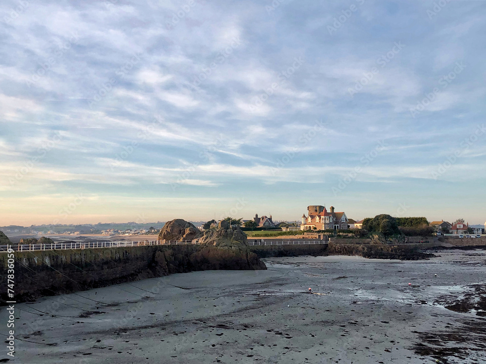 Panoramic view of the tidal zone near La Rocque, Jersey