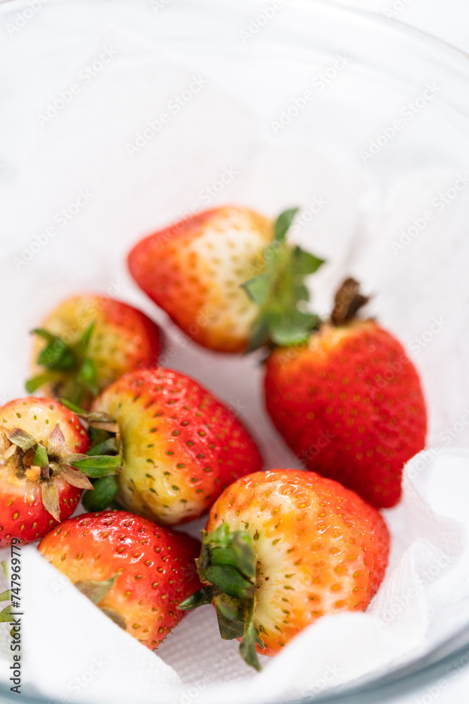 Washed and Dried Strawberries Neatly Stored in a Glass Bowl