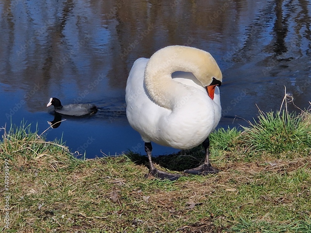 Sich putzender Höckerschwan am Teich - cygnus 4