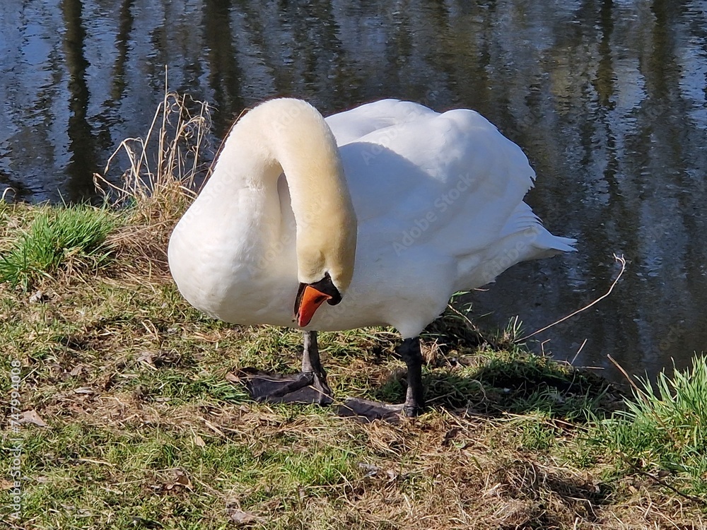 Sich putzender Höckerschwan am Teich - cygnus 3