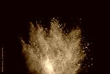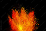 Abstract powder splatted background. Colorful powder explosion on black background. Colored cloud. Colorful dust explode. Freeze motion of orange color powder exploding
