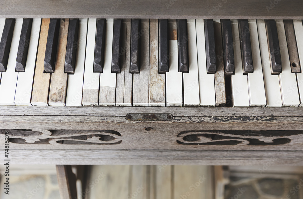 Vintage wooden piano key close up