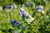 Blueberry farm with bunch of ripe fruits on tree during harvest season in Izmir, Turkey. Blueberry picking history.