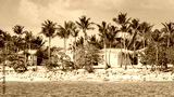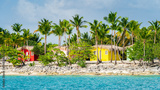 Colorful houses on Catalina beach, dominican republic with palm trees
