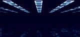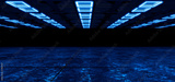 Background for futuristic design. Background for your product. Blue spotlights in a metal hangar. Futuristic background.