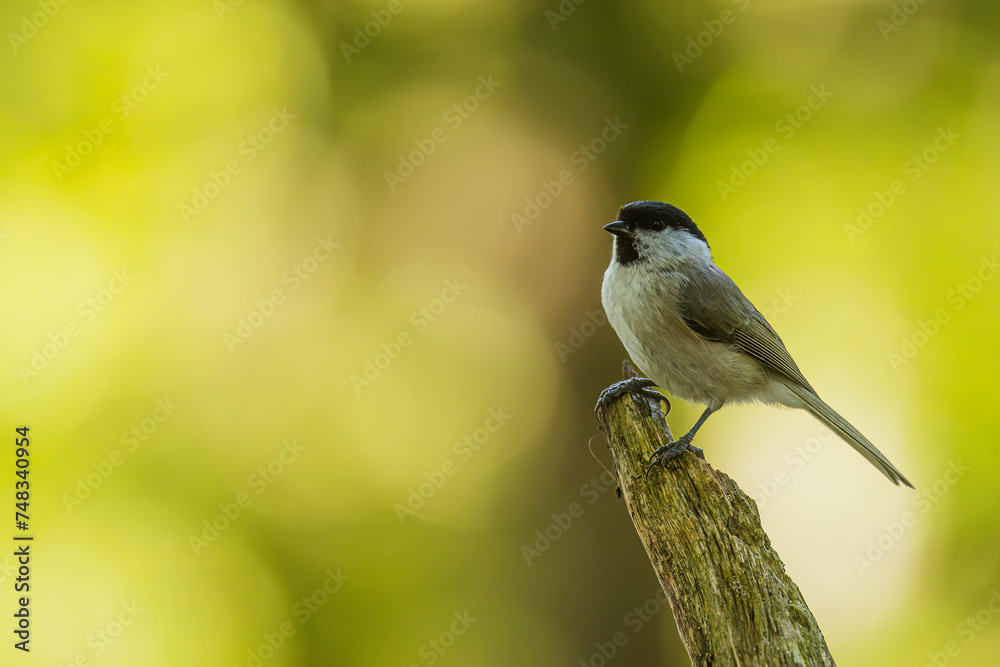 small bird marsh tit (Poecile palustris) on the branches