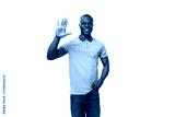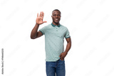 young friendly african guy with short haircut dressed in a mint t-shirt and jeans