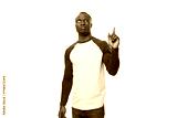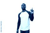 a young American guy with a short haircut is actively gesturing on a white background with copy space