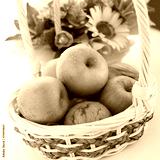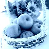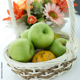 basket of green apples on white background