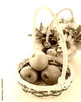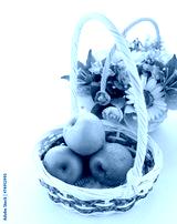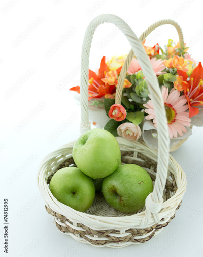 basket of green apples on white background