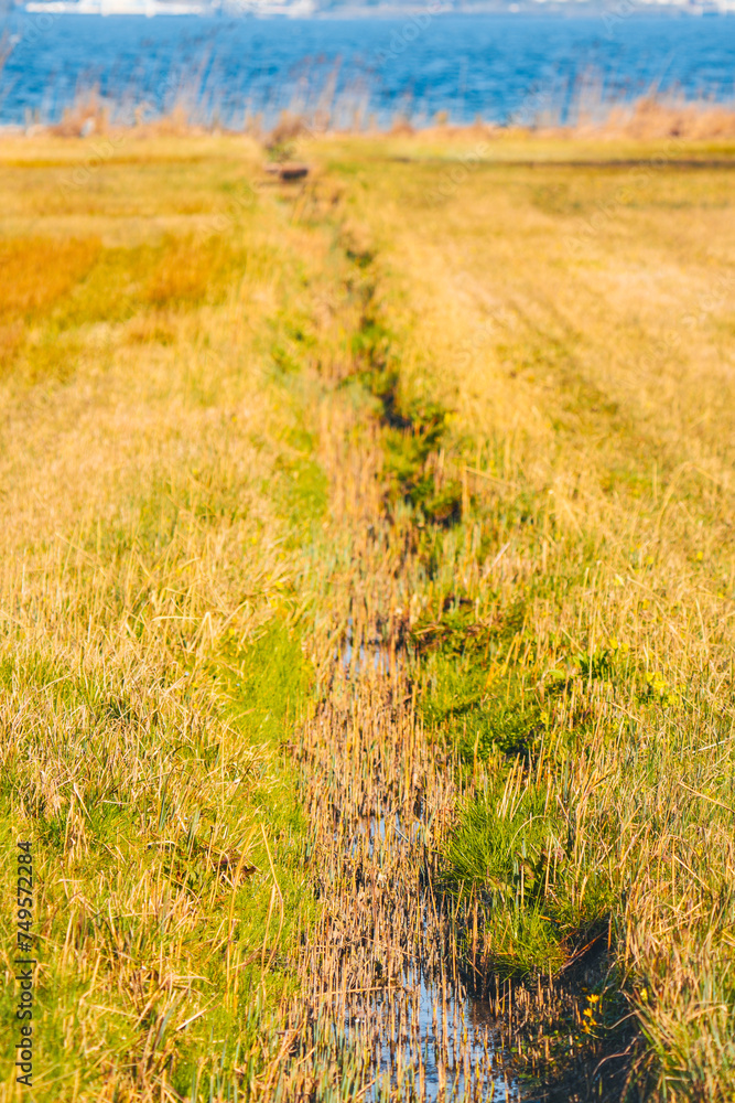 path in the field, sloot in spring