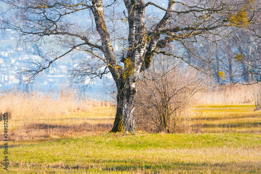 Tree on zurich lake in Au, Wädenswil, Zurich, Switzerland