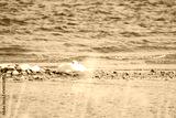 swan and sea gulls standing and sleeping on a sandbank in zurich see au wädenswil