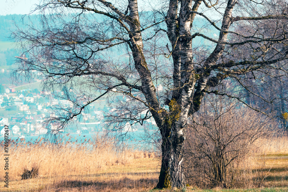 Tree on zurich lake in Au, Wädenswil, Zurich, Switzerland