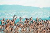 close up of reeds in the wind in Au, zurich see, lake, wädenswil switzerland