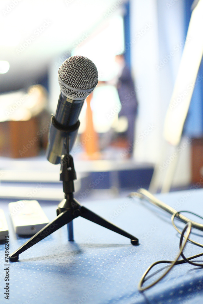 Close up of microphone in conference room