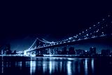 Manhattan Bridge at night, seen from Brooklyn Bridge Park, in Br