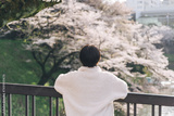 Back view japanese woman with sakura cherry blossom tree in Tokyo city Japan on spring season