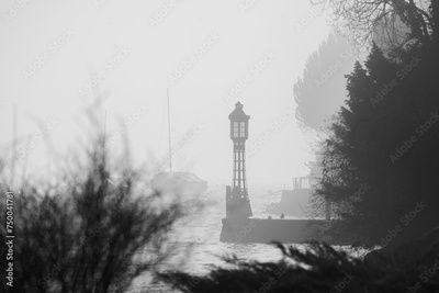 pier of Au, Wädenswil, zurich lake black and white in the fog landscape