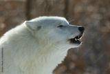 male Arctic wolf (Canis lupus arctos) is ready to growl