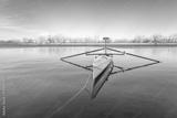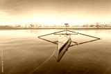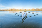 Coastal rowing shell by on a lake in northern Colorado in winter or early spring scenery.