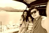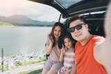 Summer break Happy family having fun while taking a selfie camera. The concept of family on vacation and travel.