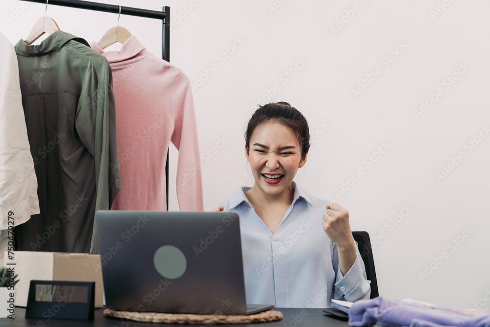 Young asian entrepreneurs are excited about hitting today's clothing sales target.