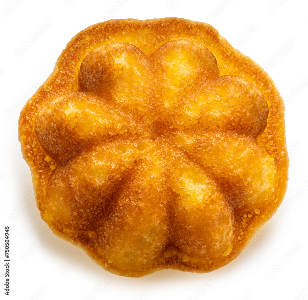 Sweet egg sponge muffin cake isolated on white background, Castella cake made with egg and sugar, soft dough on white With clipping path.