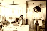 A team member shares a light-hearted comment, sparking laughter and enhancing the creative and relaxed brainstorming session. The humor and ease as integral parts of effective collaborative process