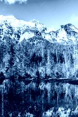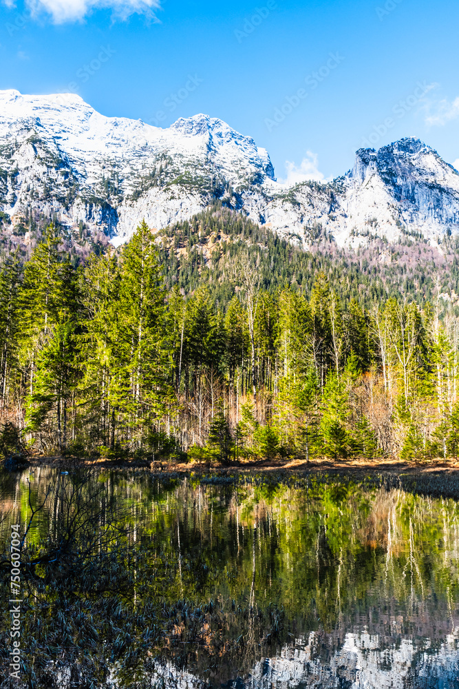 Lake Hintersee in Germany, Bavaria, Ramsau National Park in the Alps. Beautiful winter landscape.