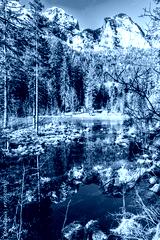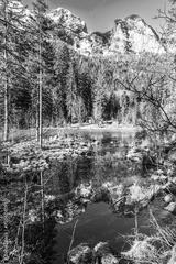 Lake Hintersee in Germany, Bavaria, Ramsau National Park in the Alps. Beautiful winter landscape.