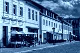 beeskow, deutschland - sanierte häuserzeile am marktplatz