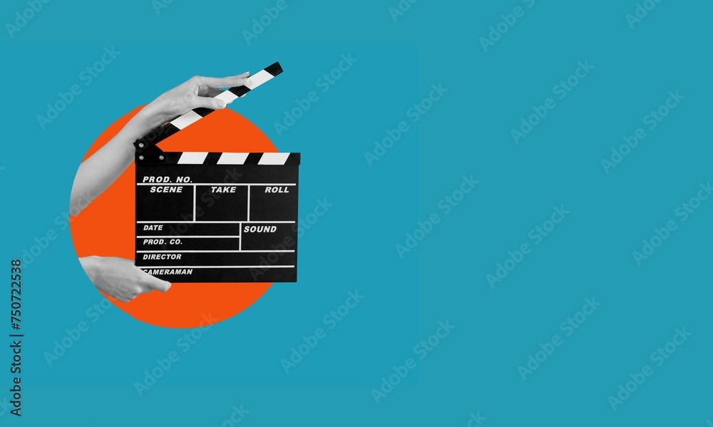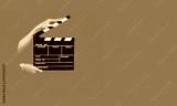 Hands holding film clapper board