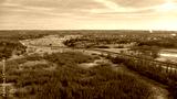 Rozlewisko rzeki Warta. Mirowski przełom Warty w Częstochowie. Widok z drona. Rzeka.